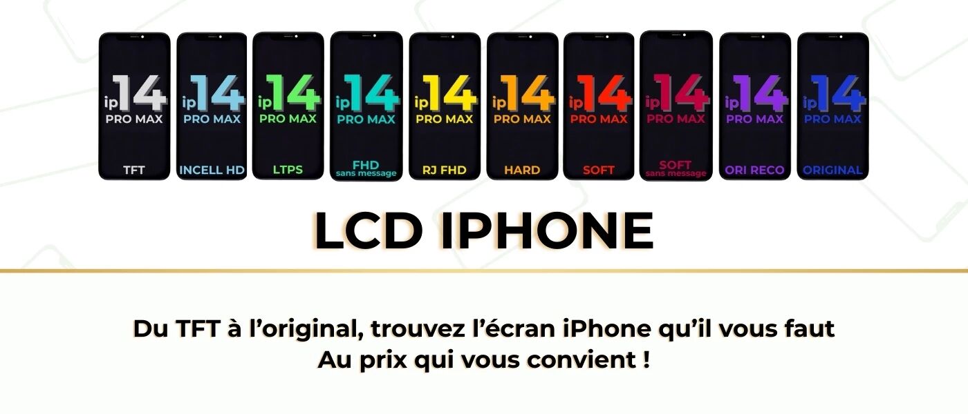 - Écrans de Remplacement : écrans haute résolution pour les modèles de téléphones les plus courants.