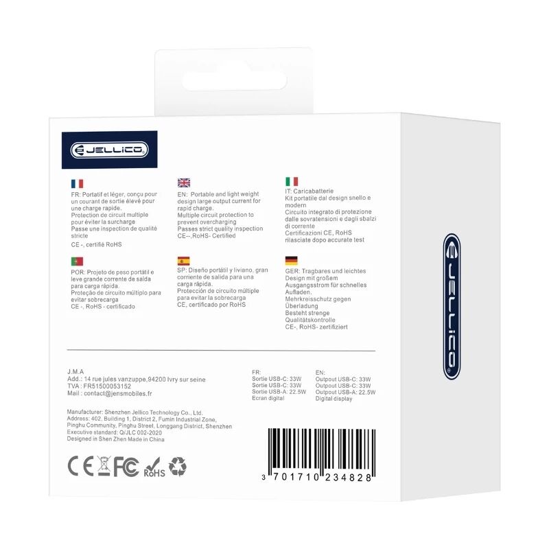 Le JELLICO F15 est un chargeur voiture haute performance conçu pour les utilisateurs exigeants. Avec ses 3 ports (2× USB-C + 1× USB-A) et sa puissance cumulée de 85.5W, il permet de charger en même temps smartphones, tablettes, GPS, batteries externes ou accessoires électroniques sans perte de puissance.