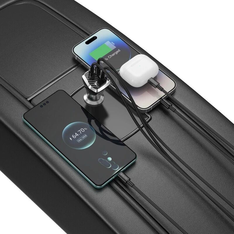 - 2× USB-C (33W) + 1× USB-A (22.5W)