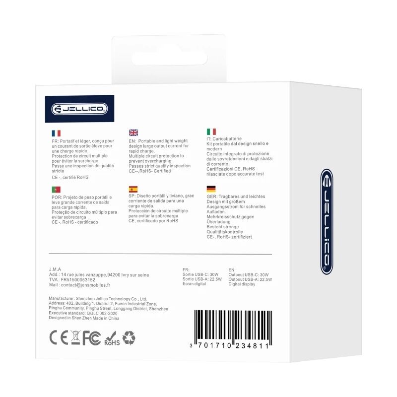 Le JELLICO F13 est un chargeur de voiture compact et performant, conçu pour répondre aux besoins d’utilisateurs modernes recherchant une charge rapide et fiable en déplacement.