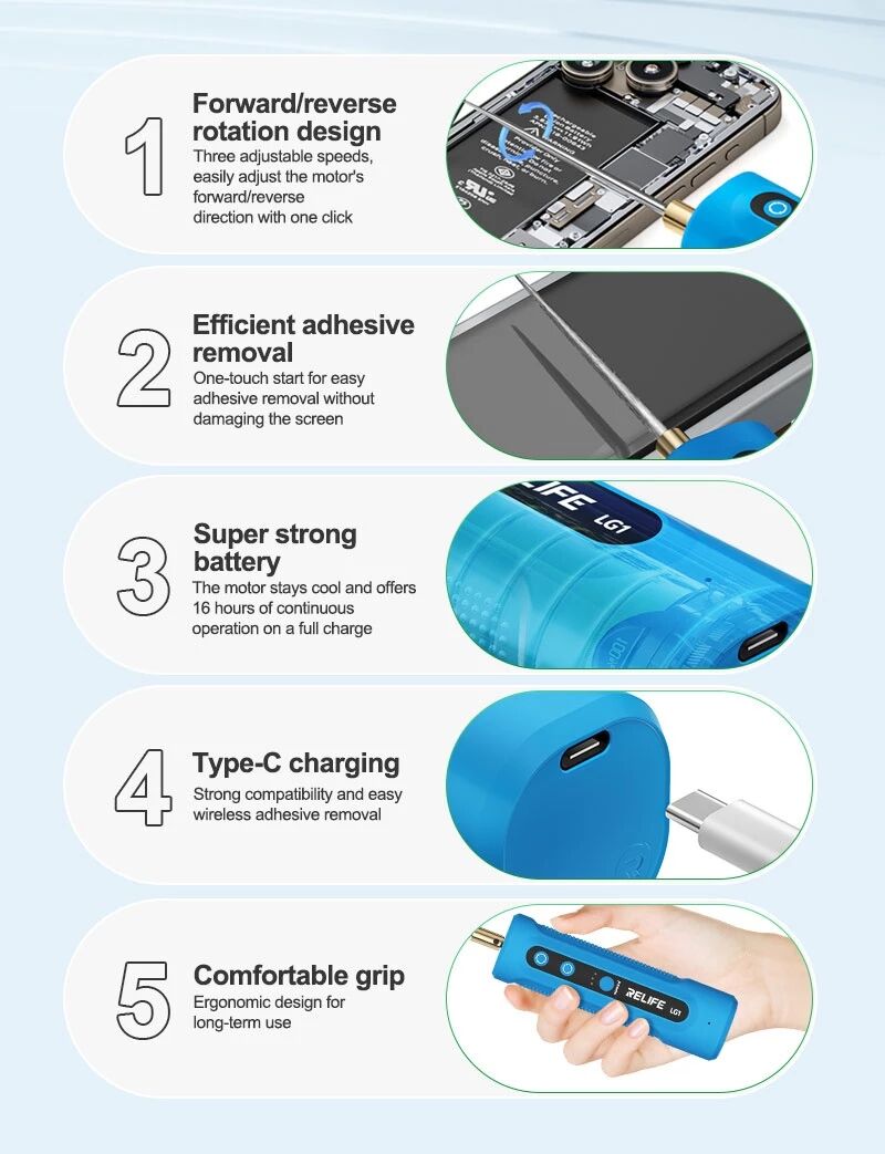 Le RELIFE LG1 est idéal pour les techniciens en réparation mobile, ateliers professionnels et utilisateurs avancés recherchant un outil fiable, précis et sécurisé pour le décollage de colle sans forcer mécaniquement sur les composants.