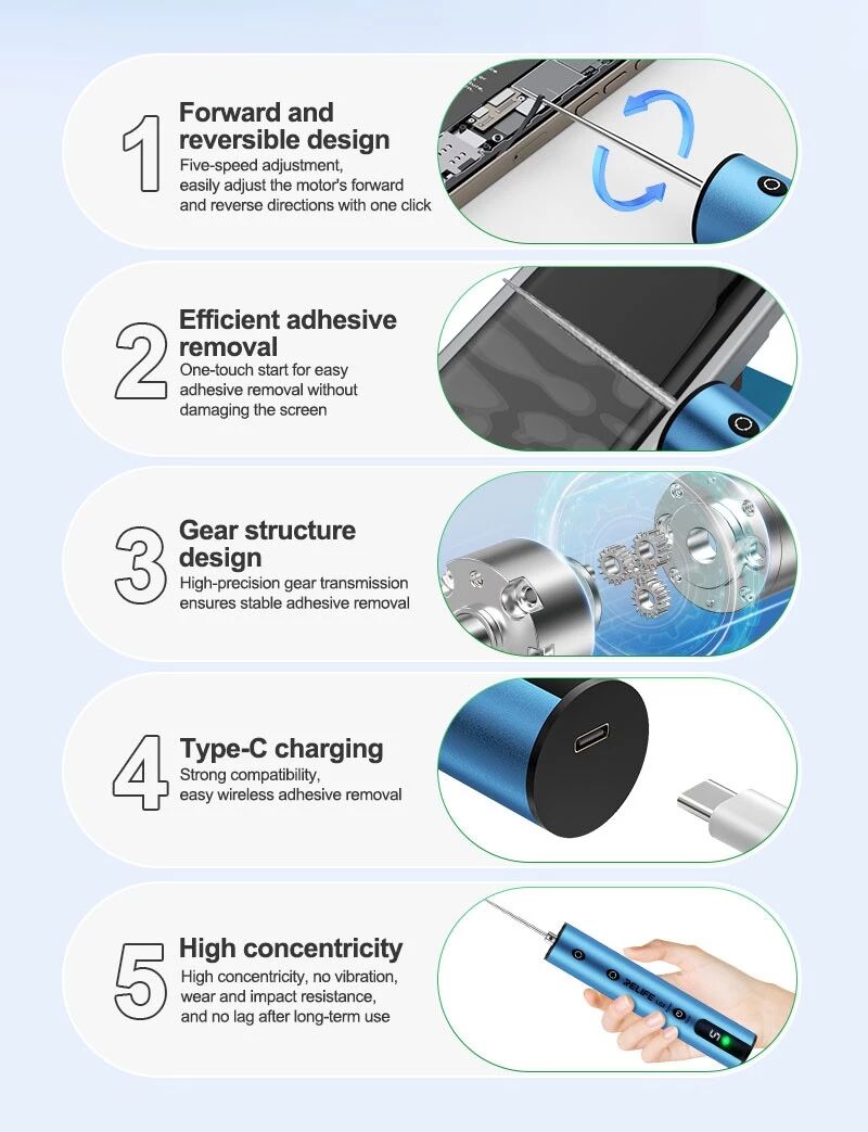 Le RELIFE LG2 Glue Remover est un outil professionnel dédié au retrait précis de colle et d’adhésifs utilisés dans la réparation de smartphones et d’appareils électroniques. Son système mécanique contrôlé permet d’appliquer une action ciblée et régulière pour ramollir ou détacher la colle sans endommager les composants environnants.