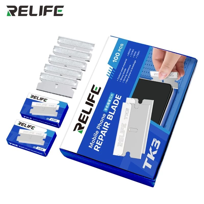 Conditionnées en lot de 100 pièces, les lames RELIFE TK3 sont idéales pour les ateliers professionnels, les techniciens indépendants et les centres de réparation à fort volume, assurant un stock durable et économique pour un usage quotidien.