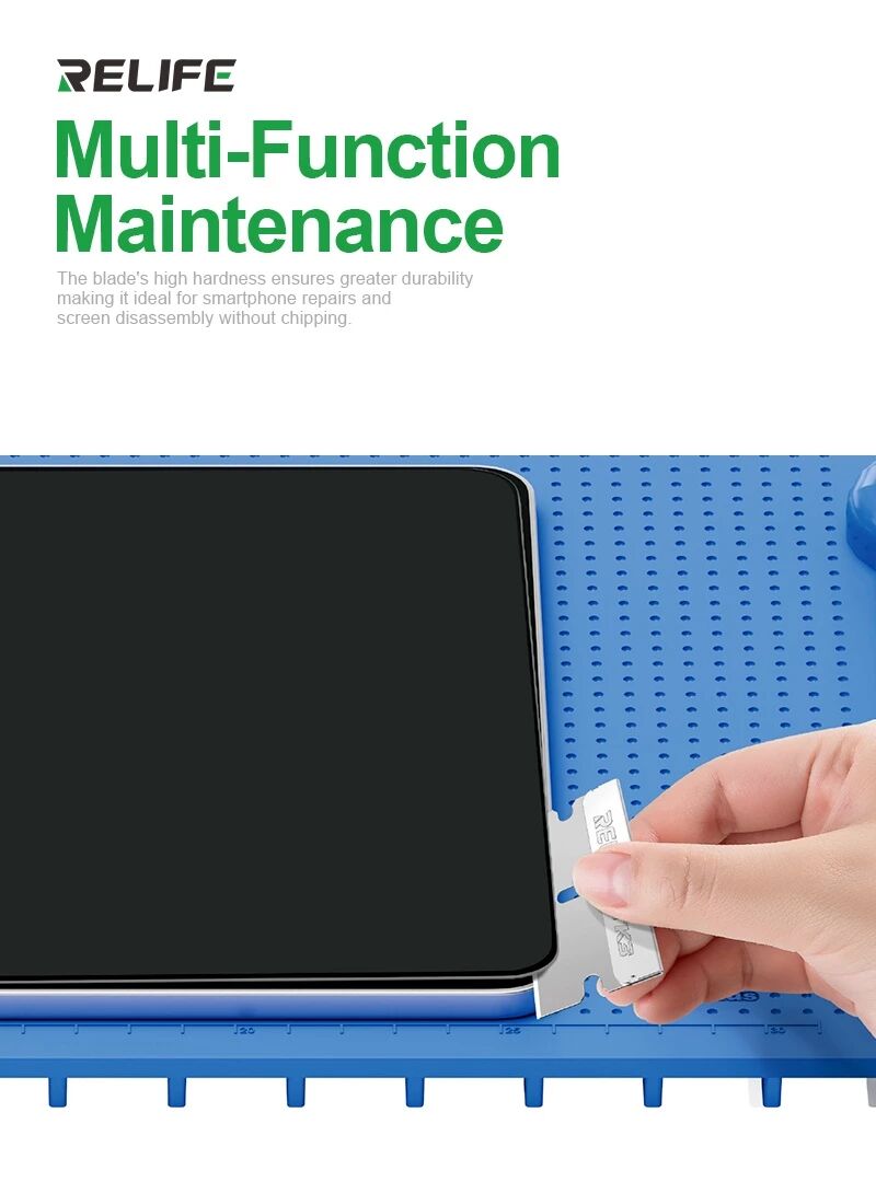 Les lames de réparation RELIFE TK3 sont spécialement développées pour les opérations de démontage et de réparation de smartphones. Leur finesse et leur rigidité permettent de séparer les écrans, retirer les adhésifs et intervenir sur les composants collés sans exercer de pression excessive.