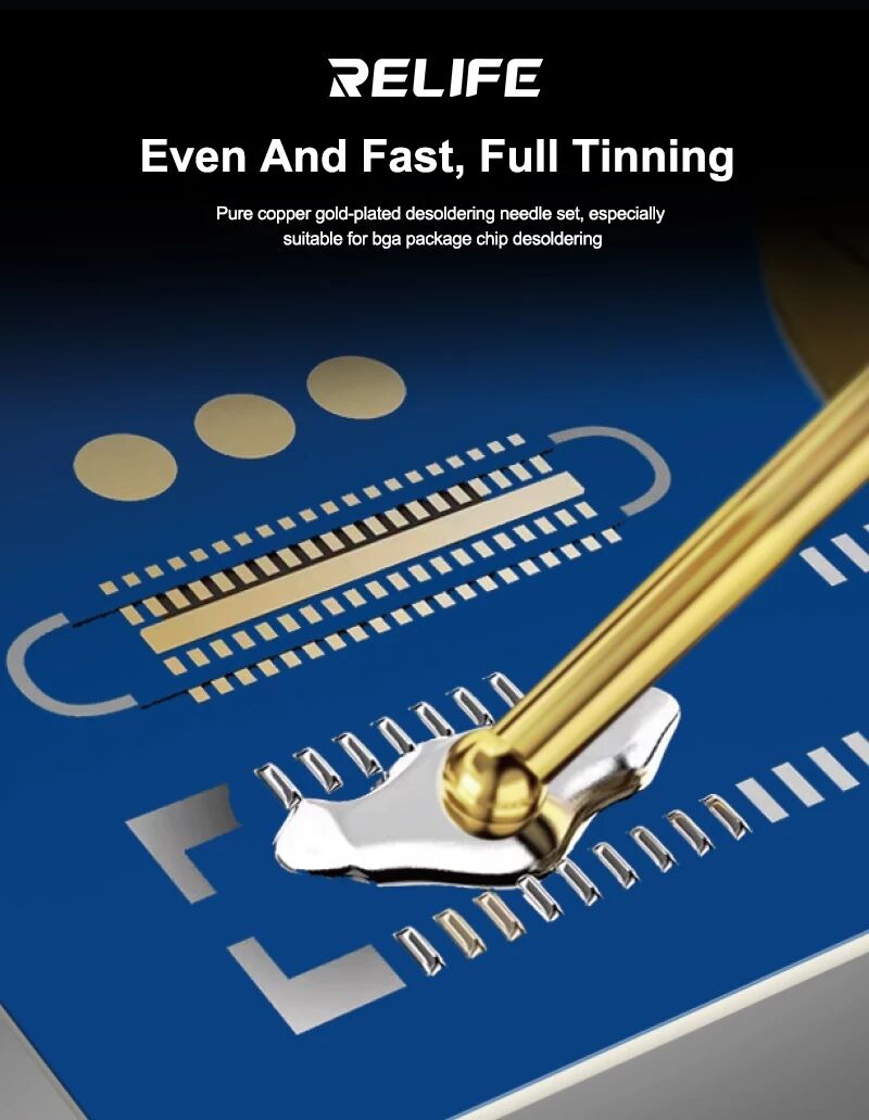 Grâce à ses différentes aiguilles incluses, le RELIFE TO6 s’adapte à plusieurs diamètres de trous et types de composants. C’est un outil indispensable pour les ateliers professionnels, les réparateurs de smartphones, consoles et appareils électroniques.