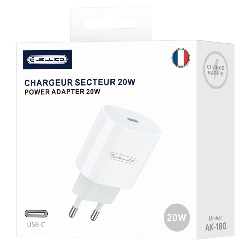 Accueil > Accessoires > Adaptateur chargeur > Pour secteur > Adaptateur secteur Usb-C (20W) JELLICO AK180 blanc