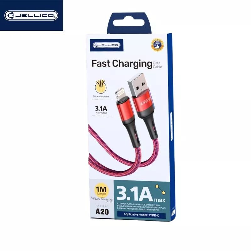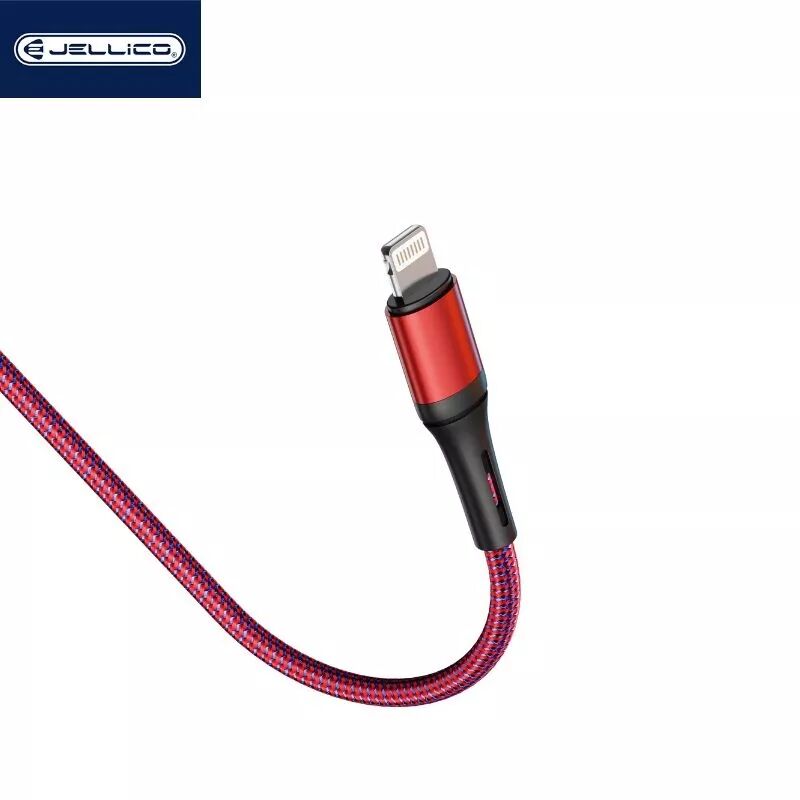 Cable Usb vers Lightning (3.1A) 1 mètre en nylon tressé JELLICO A20 (Boite/BLISTER) rouge