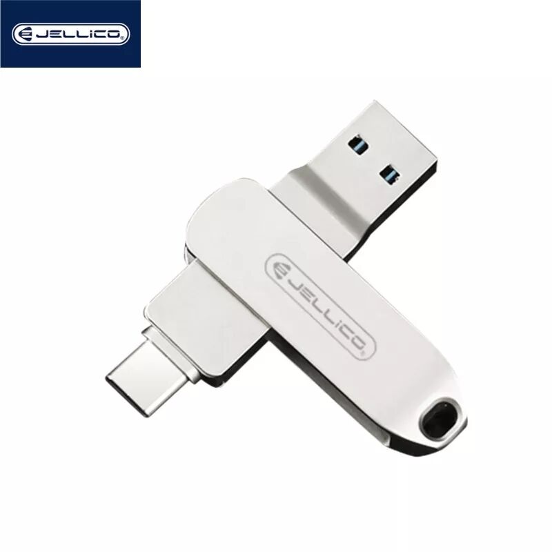 La clé USB JELLICO T07 combine 32 Go de stockage avec une double connexion : USB‑C pour les appareils récents et USB‑A pour les anciens.