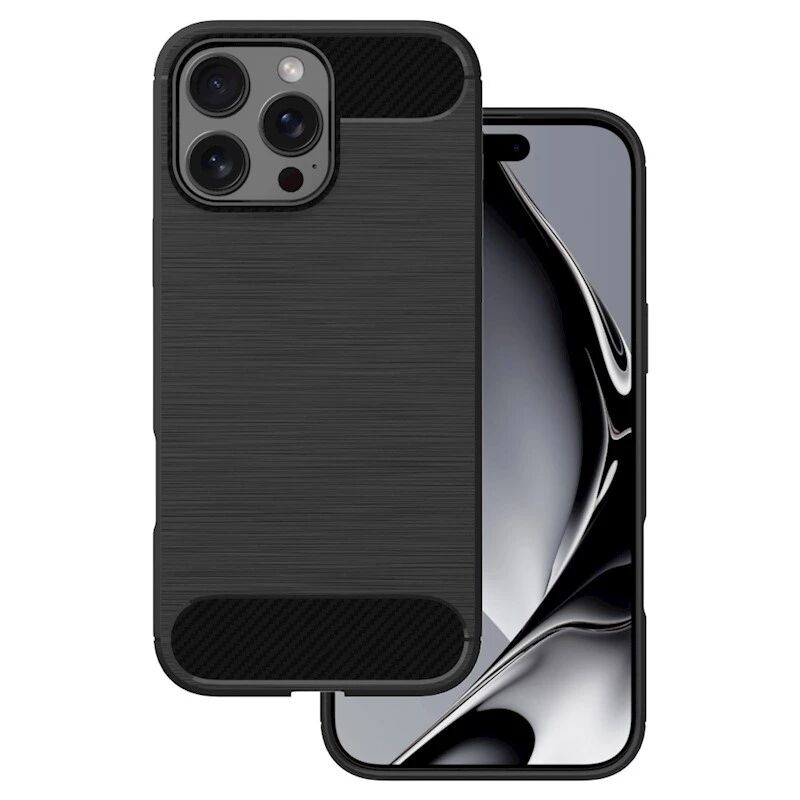 Coque en TPU renforcé avec finition carbone moderne. Bords surélevés pour protéger écran et caméra, compatible charge sans fil. Robuste, élégante et idéale au quotidien.