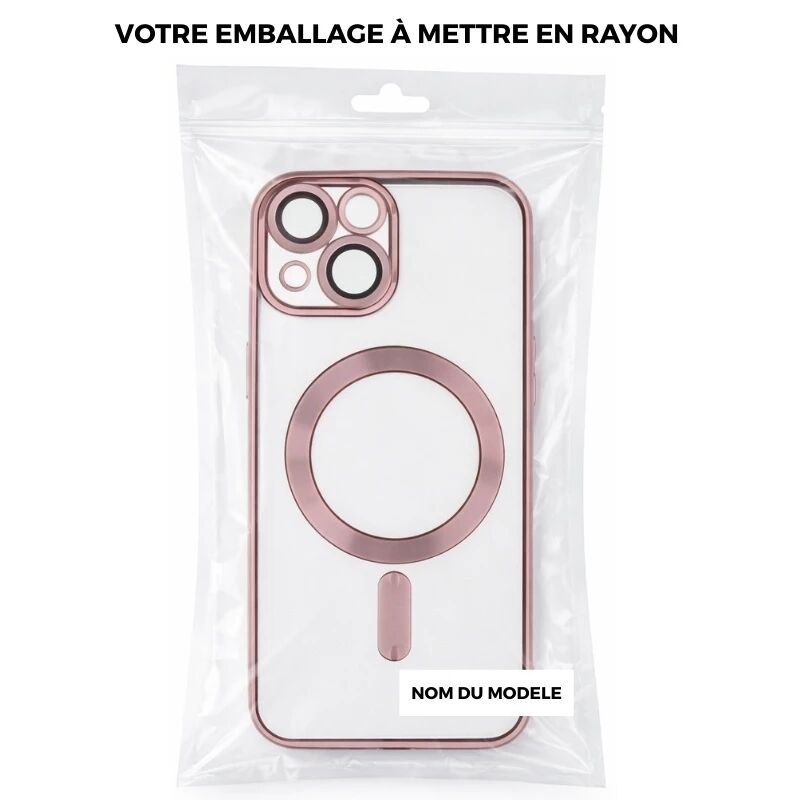 La coque CHROME EDGE MAG combine un dos transparent renforcé en TPU épais avec des contours colorés finition chrome pour un rendu moderne et distinctif.