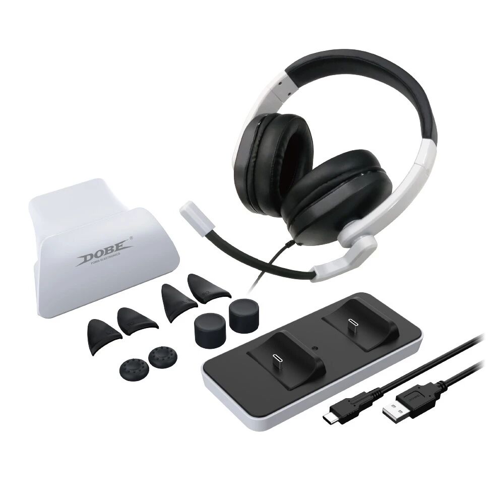 Kit d'accessoires 12pcs casque audio, station de charge, protection et support manettes pour PlayStation 5 / PS5 DOBE TP5-0578B (Boite/blister)