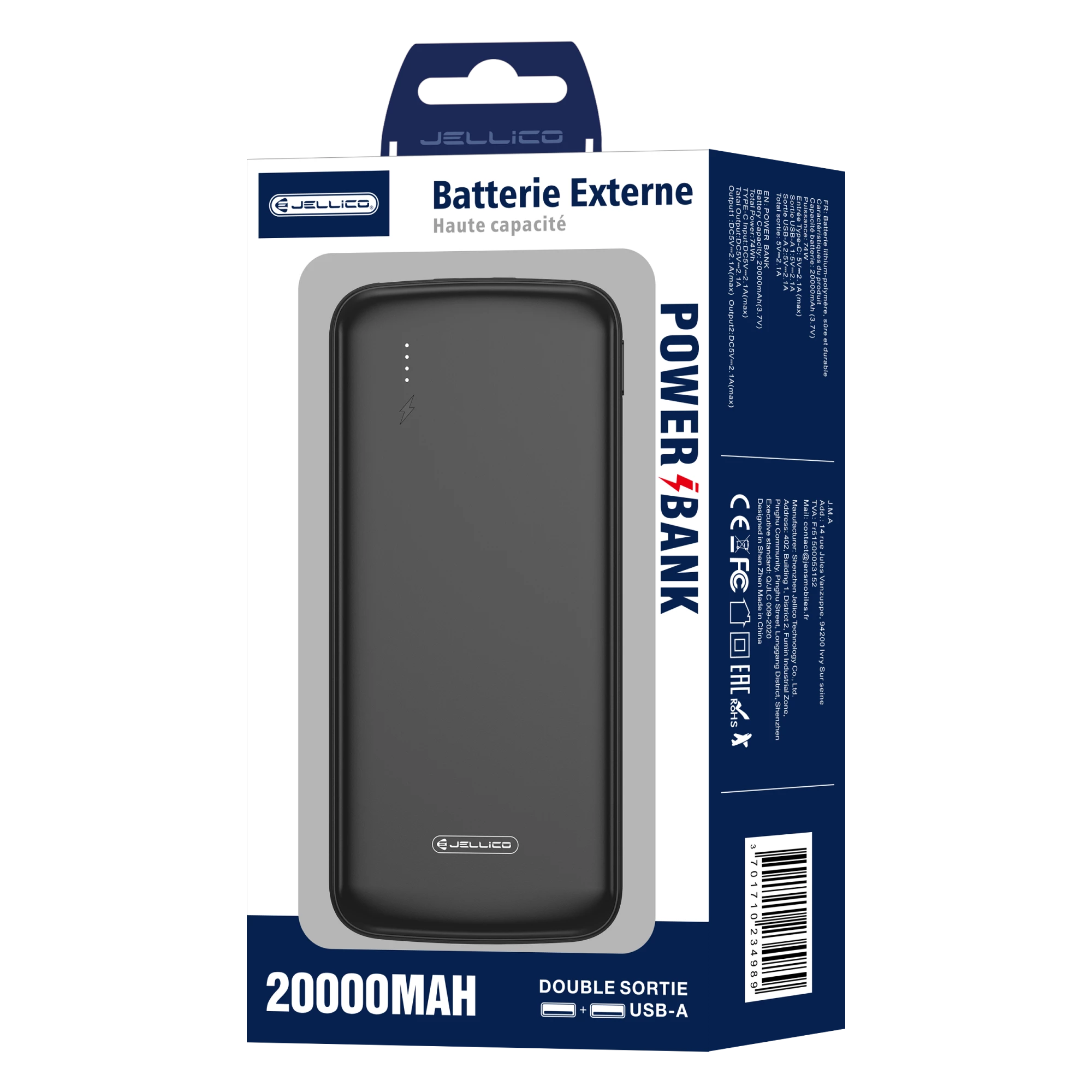 La JELLICO P52 est une batterie externe compacte de 20 000 mAh, idéale pour garder vos appareils chargés pendant la journée.