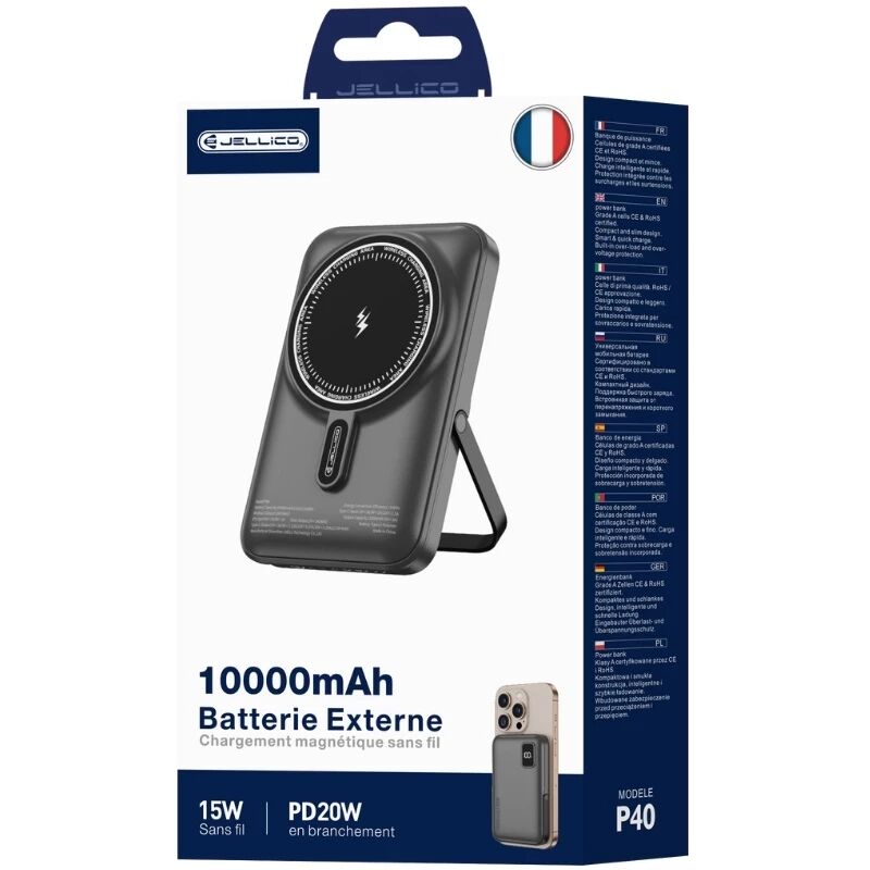 Accueil > Accessoires > Adaptateur chargeur > Power bank - batterie externe > Power Bank (Batterie Externe) Magsafe Ultraslim 10000mAh 15W JELLICO P40 noir