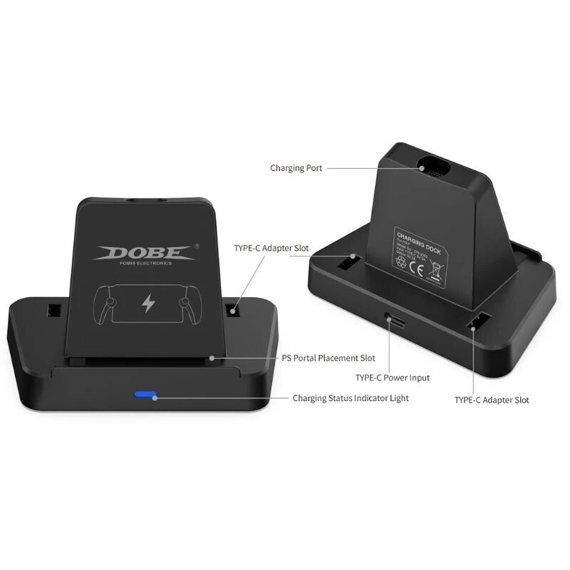 La station de charge DOBE TP5-3553 est spécialement conçue pour le PlayStation Portal. Elle assure une alimentation stable grâce à son interface USB-C parfaitement adaptée à la console portable. Son indicateur lumineux permet de visualiser facilement l’état de charge. La base protège également le port d’alimentation du Portal en évitant les branchements répétés, prolongeant ainsi la durée de vie des connectiques. Sa conception compacte et robuste garantit une utilisation pratique au quotidien.
