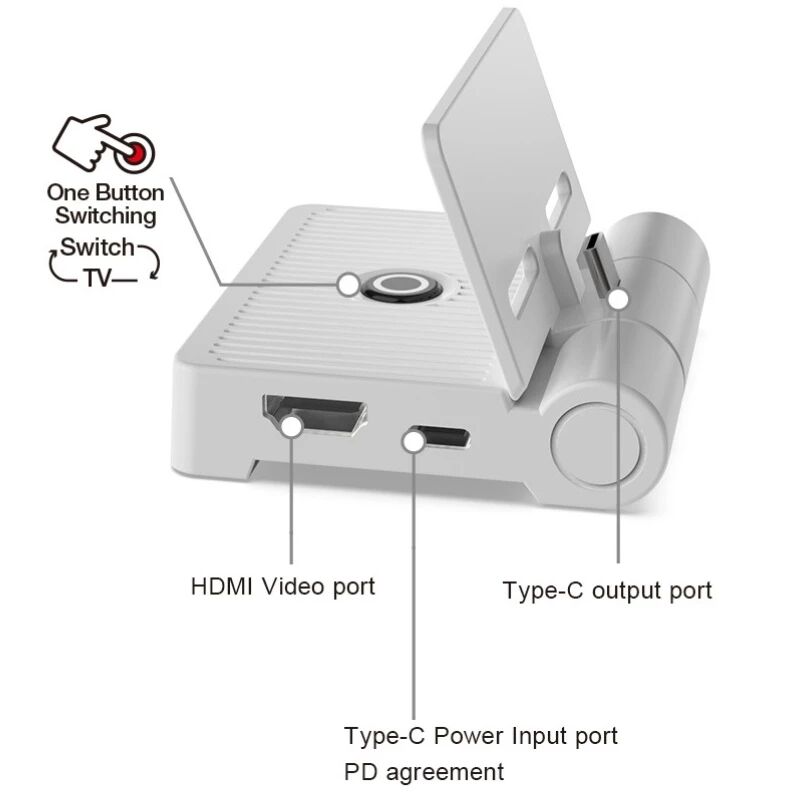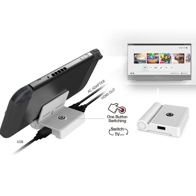 La station de conversion HDMI DOBE TNS-19305 est une alternative compacte et portable au dock officiel Nintendo Switch. Conçue pour répondre aux besoins des revendeurs recherchant une solution pratique pour la sortie TV, elle permet d’afficher l’image de la console sur un écran externe tout en rechargeant l’appareil.