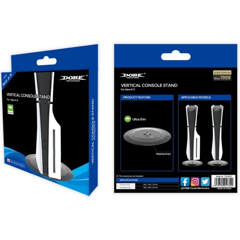 Le support vertical DOBE TP5-3573 offre une solution simple, élégante et fiable pour maintenir votre PlayStation 5, qu’il s’agisse de la version avec lecteur optique ou Digitale, parfaitement stable en position verticale.