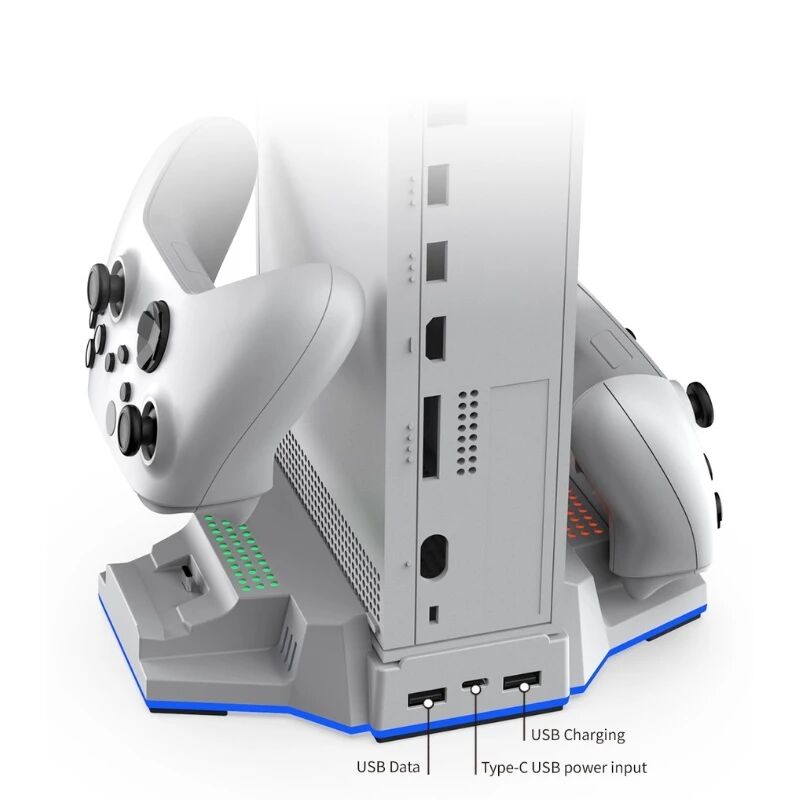 La station de charge DOBE TYX-3612 est conçue pour offrir une solution complète aux joueurs Xbox Series X/S et Xbox One. Elle permet de recharger efficacement les manettes, tout en intégrant une lumière d’ambiance élégante qui améliore l’esthétique de votre setup.
