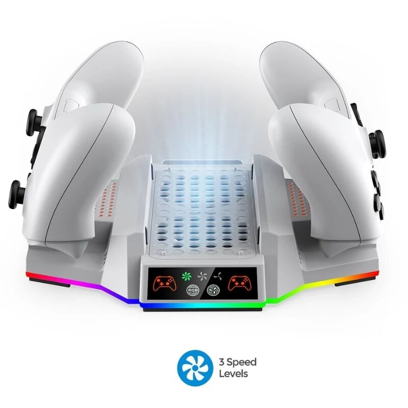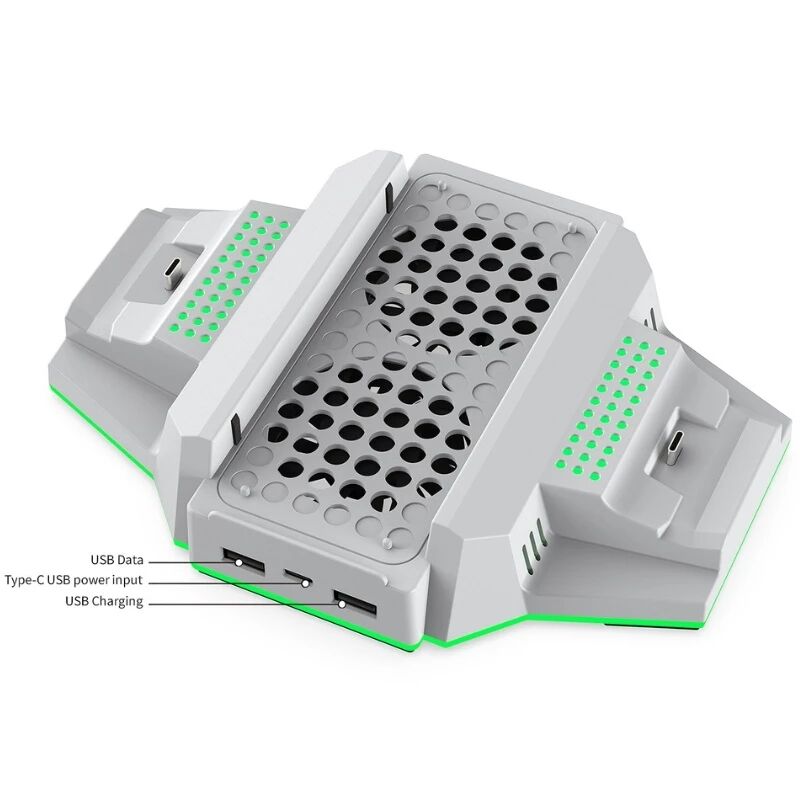 En plus de la recharge, la base contribue au refroidissement de la console, évitant les montées en température lors des longues sessions de jeu et prolongeant ainsi ses performances et sa durée de vie.
