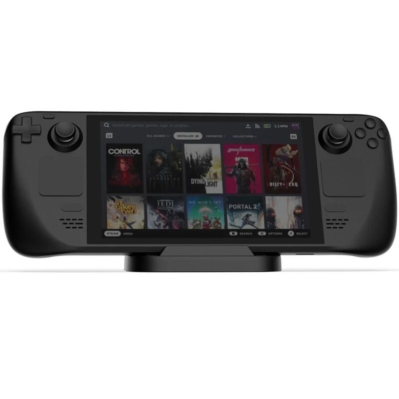 Grâce à son design épuré et harmonieux, il s’intègre parfaitement à l’esthétique du Steam Deck tout en mettant en valeur l'appareil lorsqu'il est posé dessus. Que ce soit pour jouer, regarder des contenus ou simplement ranger votre console, ce support offre une solution pratique et élégante.