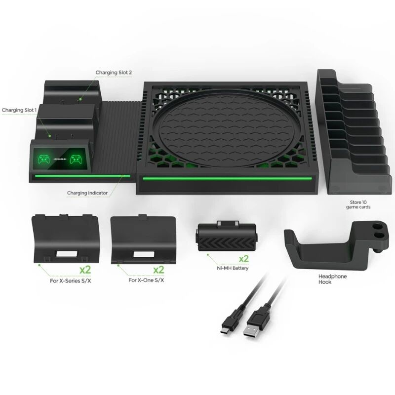 La station de charge DOBE TYX-1622 est une solution complète pour les joueurs Xbox Series X souhaitant centraliser recharge, organisation et accessoires dans un seul support élégant et robuste.Elle fonctionne via une alimentation DC 5V/1A et utilise un port USB-C, avec câble fourni. La station intègre une gestion électronique avancée comprenant protection contre les surintensités, courts-circuits, surtensions et inversions de polarité afin d’assurer une recharge sûre et stable.La recharge est optimisée grâce à un IC dédié pour batteries Ni-MH, permettant l’arrêt automatique de la charge lorsque la tension atteint 2,85 V pour prolonger la durée de vie des batteries et de la manette.